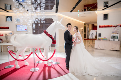 新人在籌備婚禮事項,尤其在挑選宴客餐廳往往費盡心思,所以飯店的特色是我們最優先考量的。在新人看到作品後,當時在婚禮場地最美的模樣。